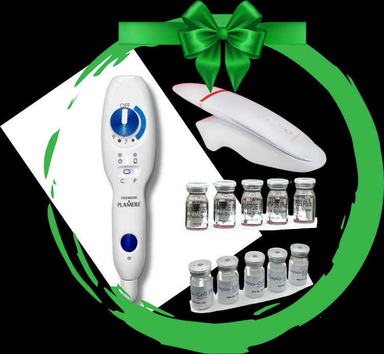 Experience the opulence of the esteemed Plasma Premium Plamere device, complemented by a selection of exquisite serums and our FACE VITAL Skin Scrubber. Take advantage of our bundled offer to optimize your savings and elevate your skincare regimen to a luxurious standard. Immerse yourself in the lavishness of the Premium Plamere Plasma device, enriched by our exclusive serums, as they bestow your skin with nourishment and radiance. Do not overlook this refined bundle, meticulously crafted to pamper you with sophistication and refinement.